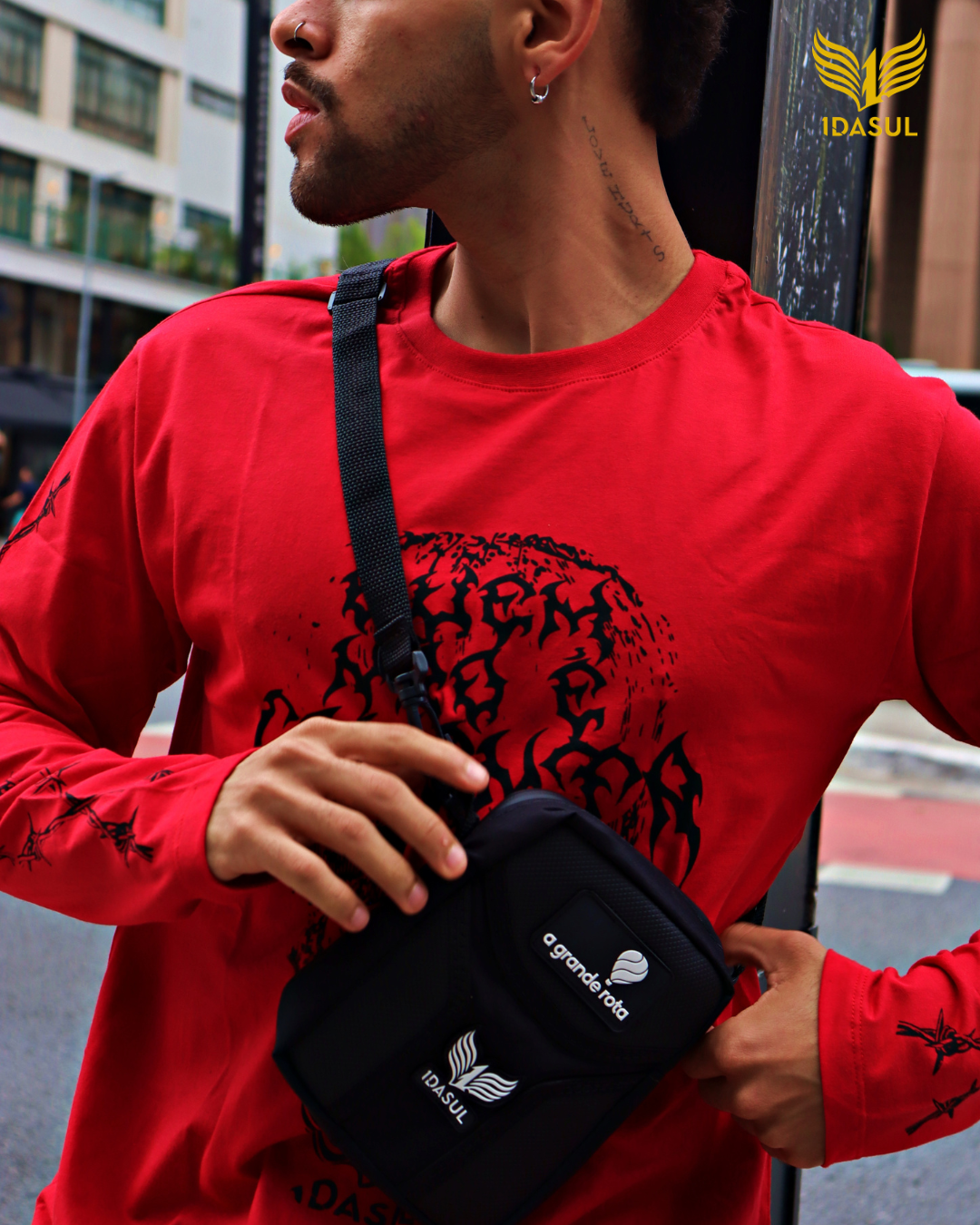 Ideal para carregar seus itens essenciais, compartimento com zíper, uma alça ajustável com protetor e etiquetas com logotipo da 1daSul e Grande Rota